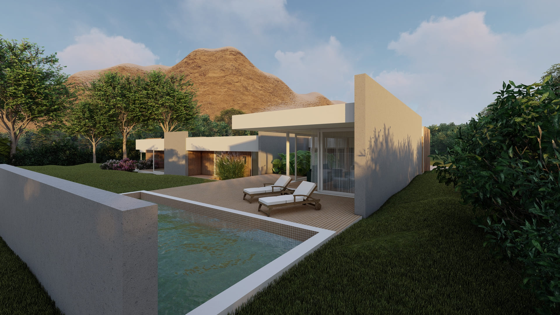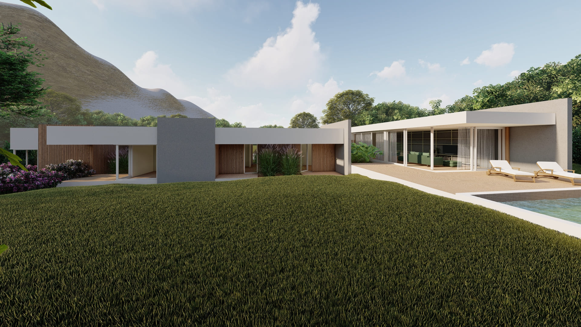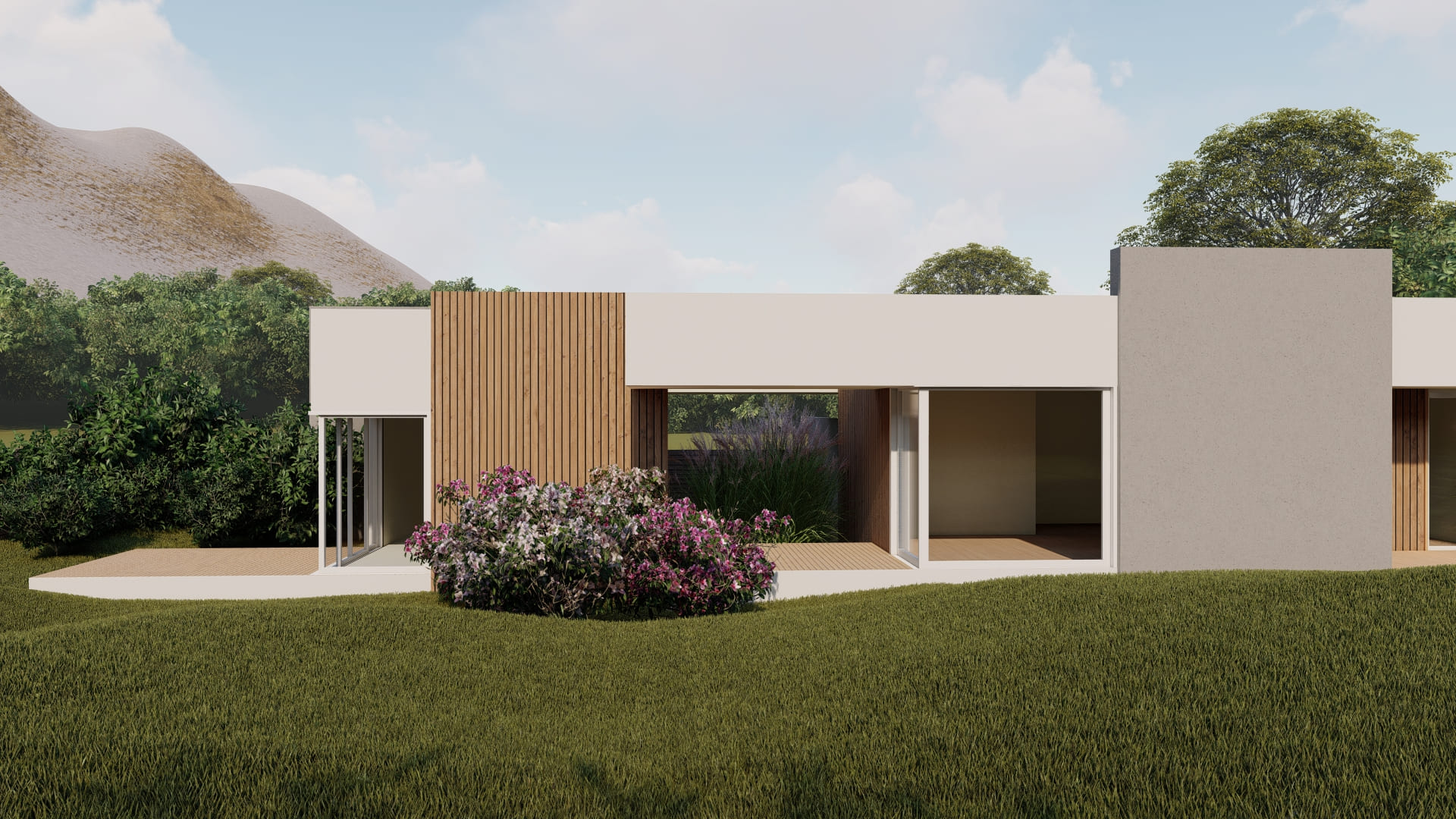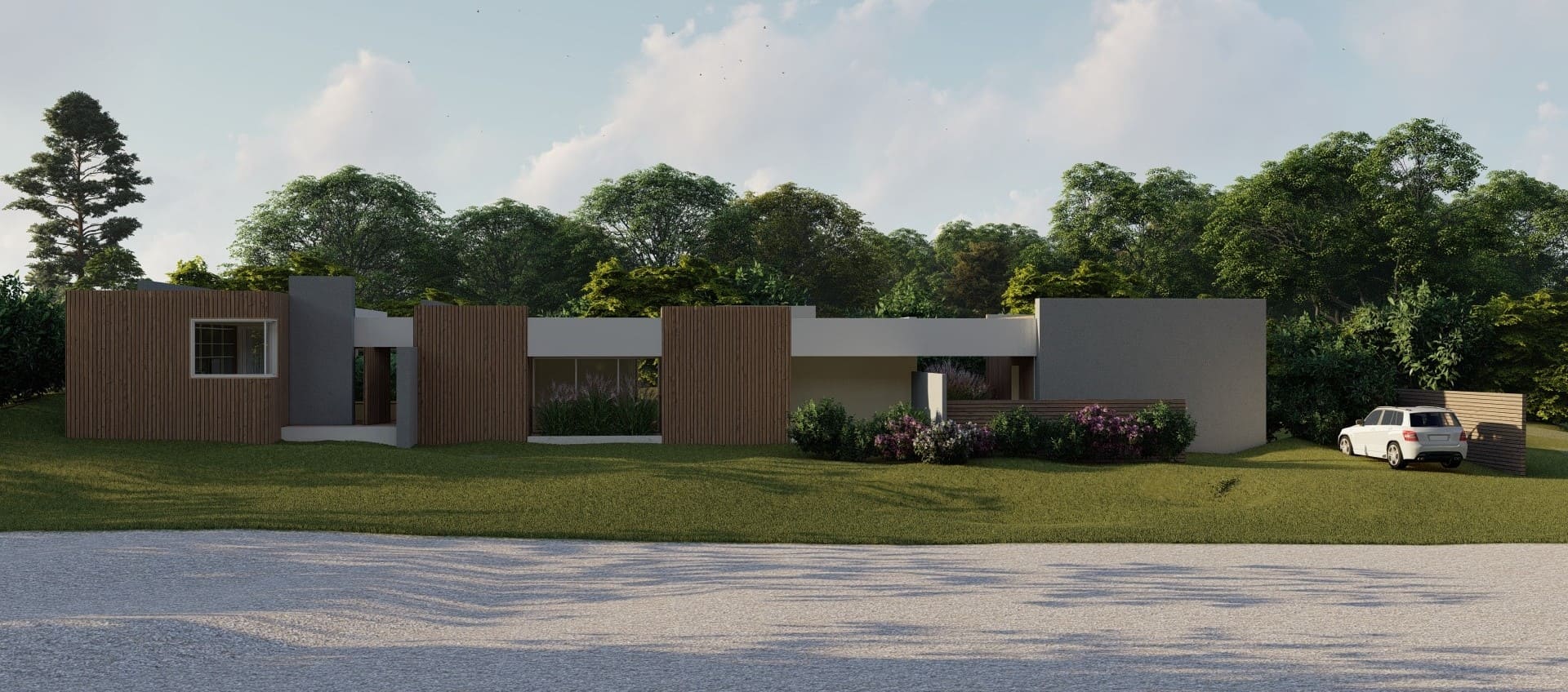 Anteproyecto diseñado para la localidad de Tandil, provincia de Buenos Aires. El terreno amplio, con leve desnivel y con una gran vista hacia las sierras, nos propuso extender la casa a lo largo del terreno, conectándolo a través de patios internos, que permiten la fluidez espacial y la continuidad a lo largo del recorrido con vista a las sierras.