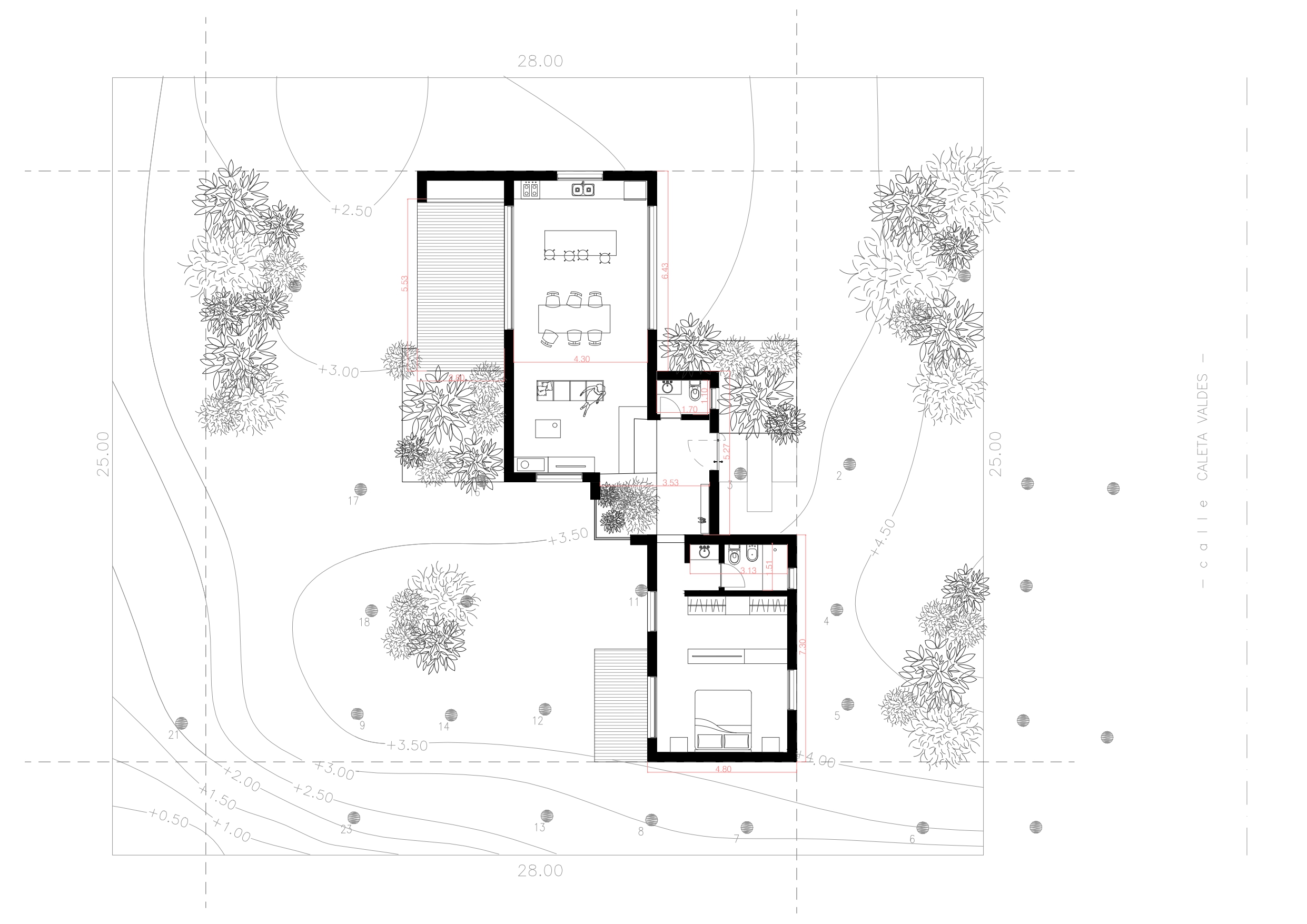 Este proyecto fue diseñado para un terreno heterogéneo en Mar de Las Pampas, provincia de Buenos Aires.