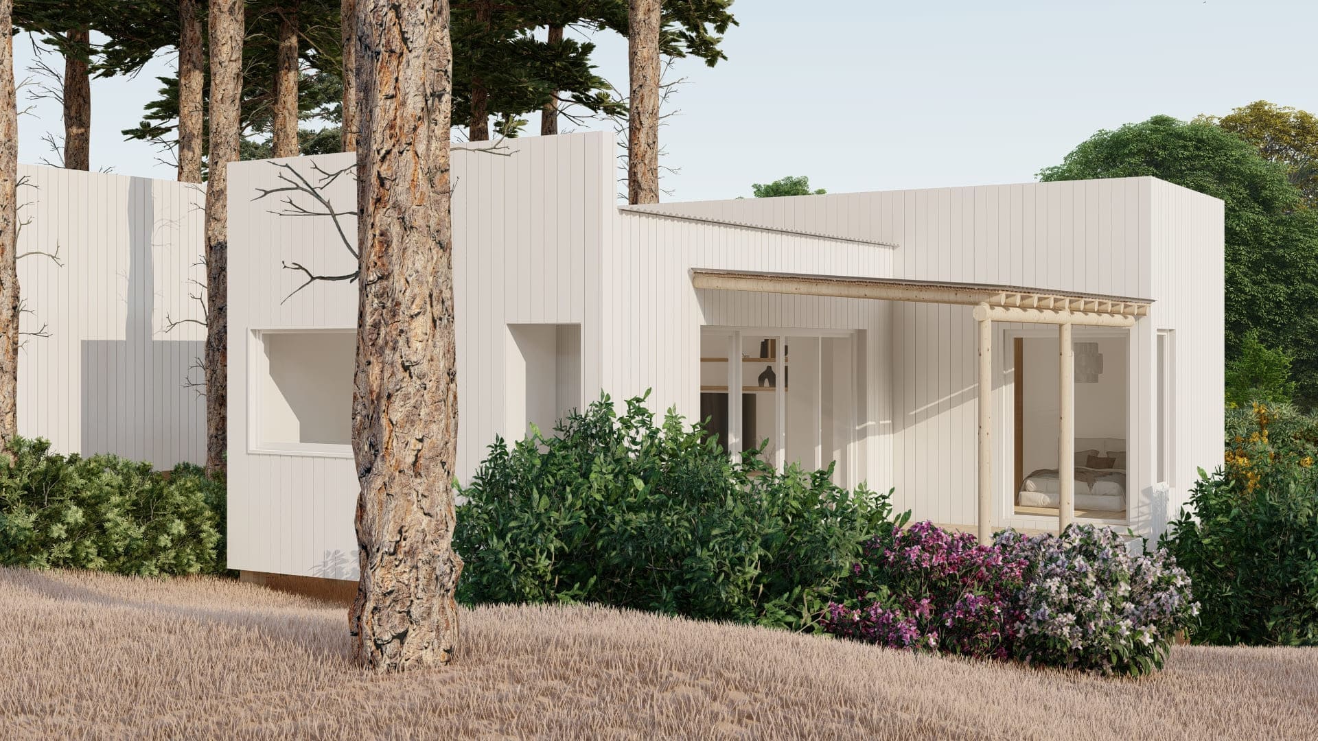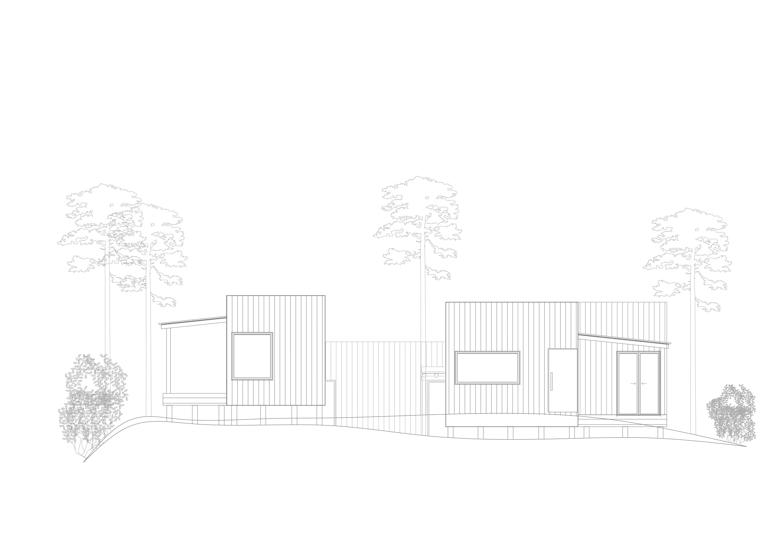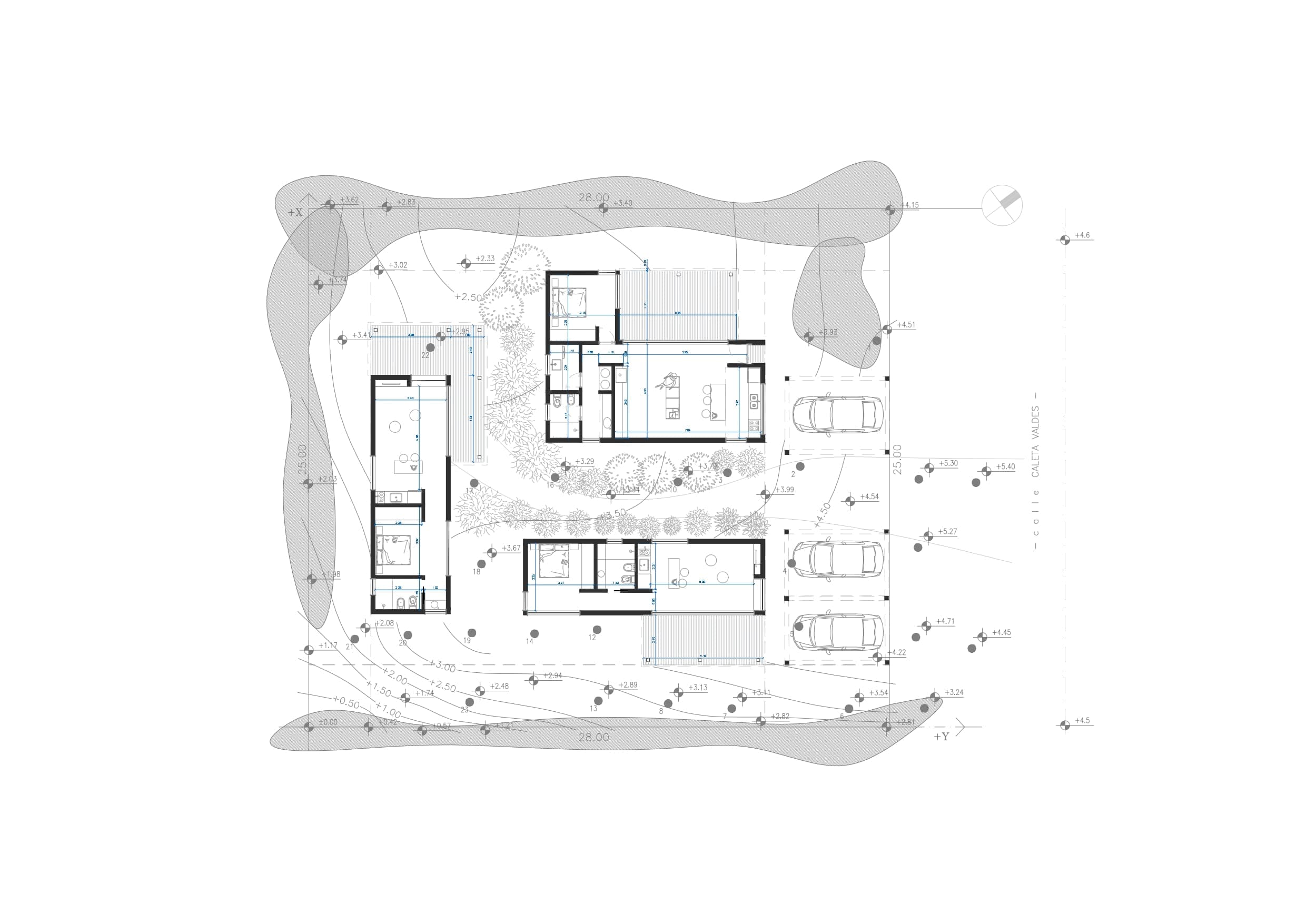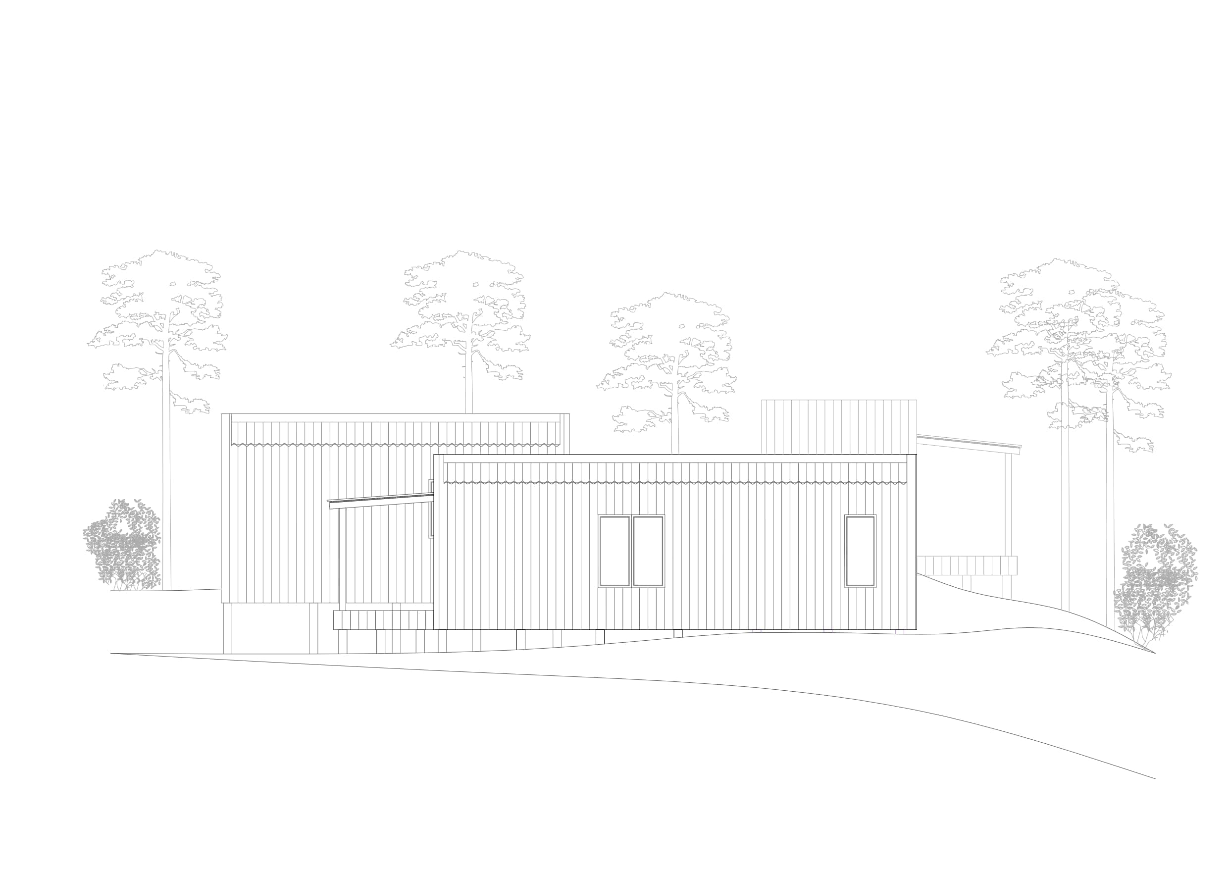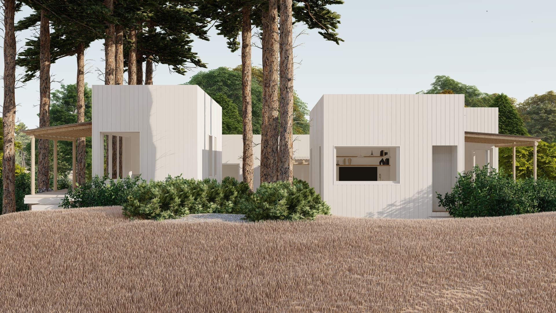 Este proyecto fue diseñado para un terreno irregular en Mar de Las Pampas, provincia de Buenos Aires. Se pensó un complejo multifamiliar de viviendas de entre 40 y 60m2 generando a través del paisaje y los árboles un recorrido y acceso a las mismas.