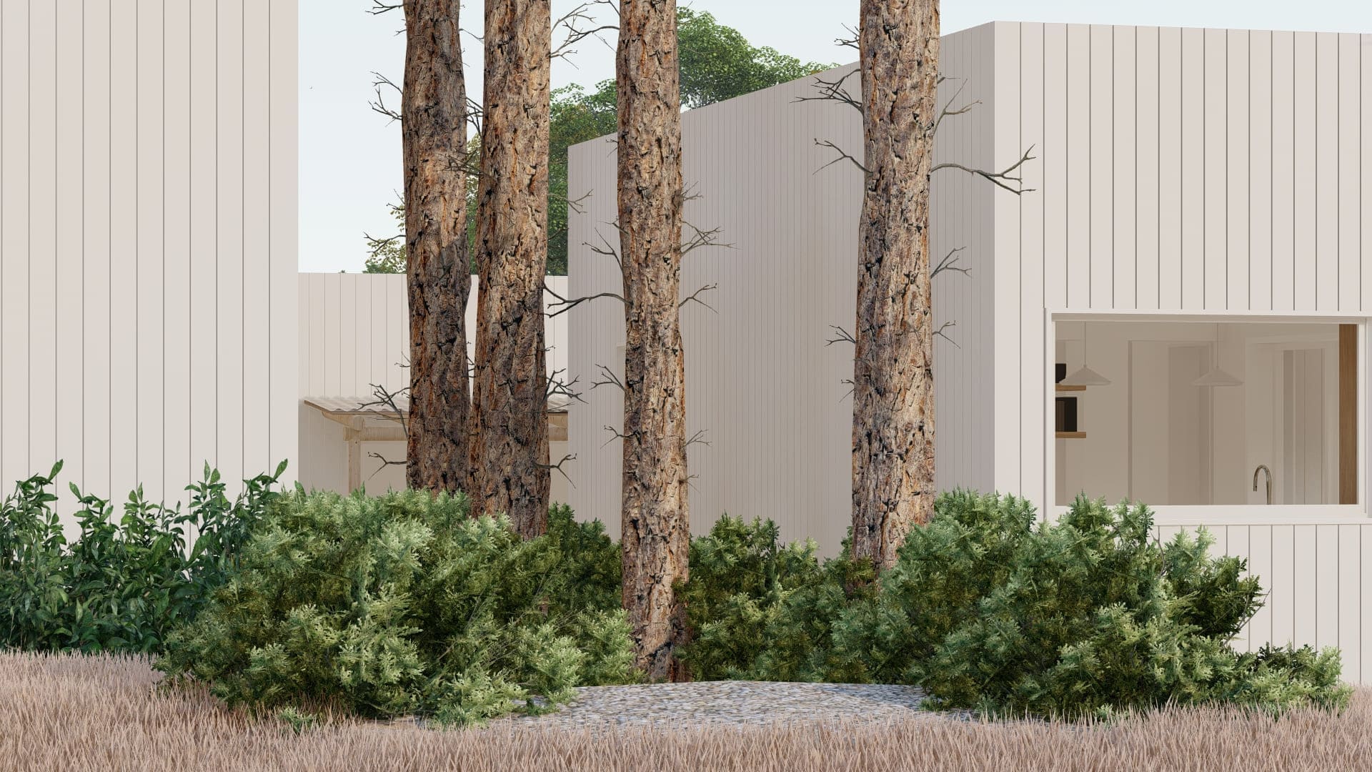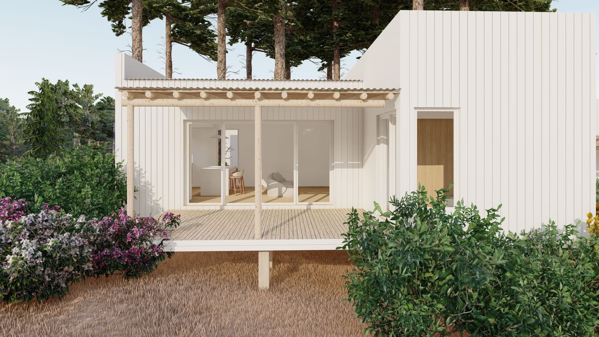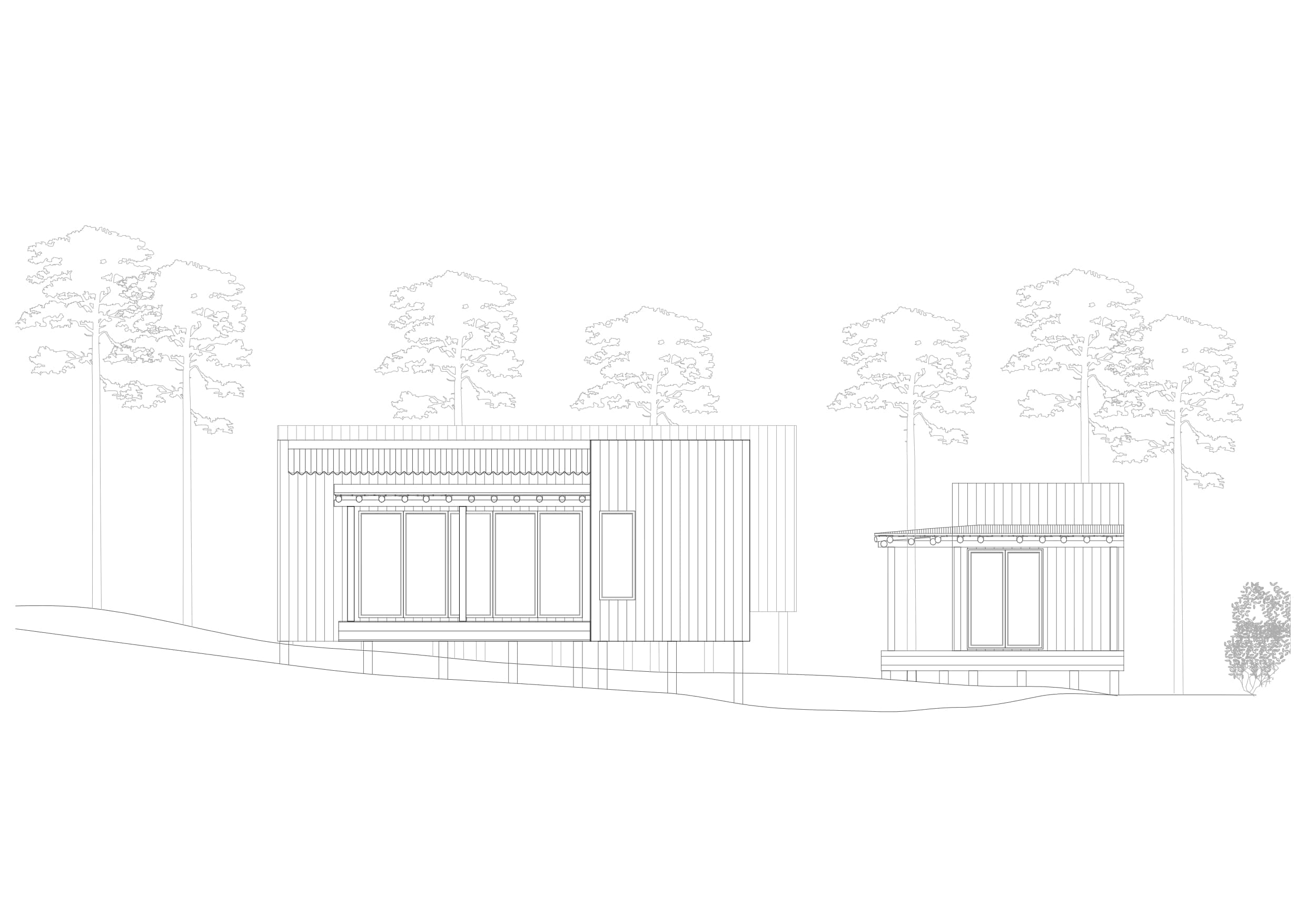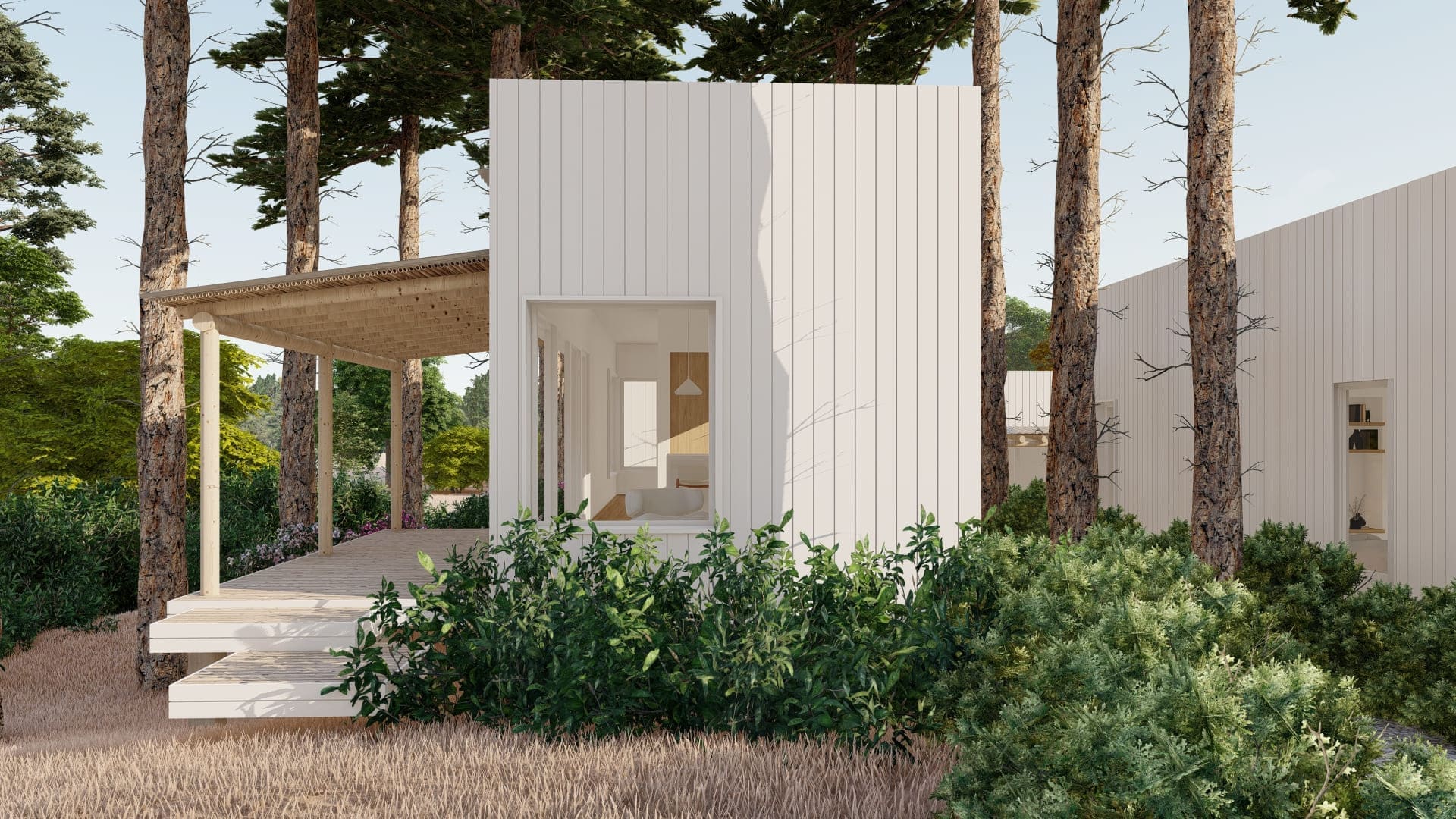 Este proyecto fue diseñado para un terreno irregular en Mar de Las Pampas, provincia de Buenos Aires. Se pensó un complejo multifamiliar de viviendas de entre 40 y 60m2 generando a través del paisaje y los árboles un recorrido y acceso a las mismas.