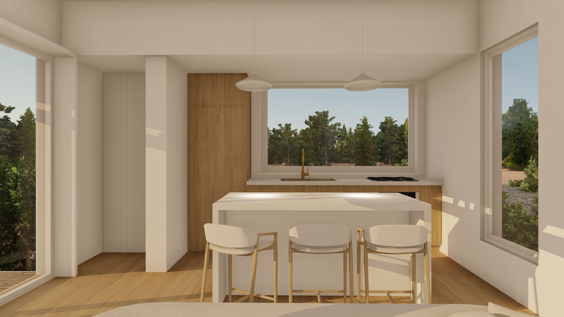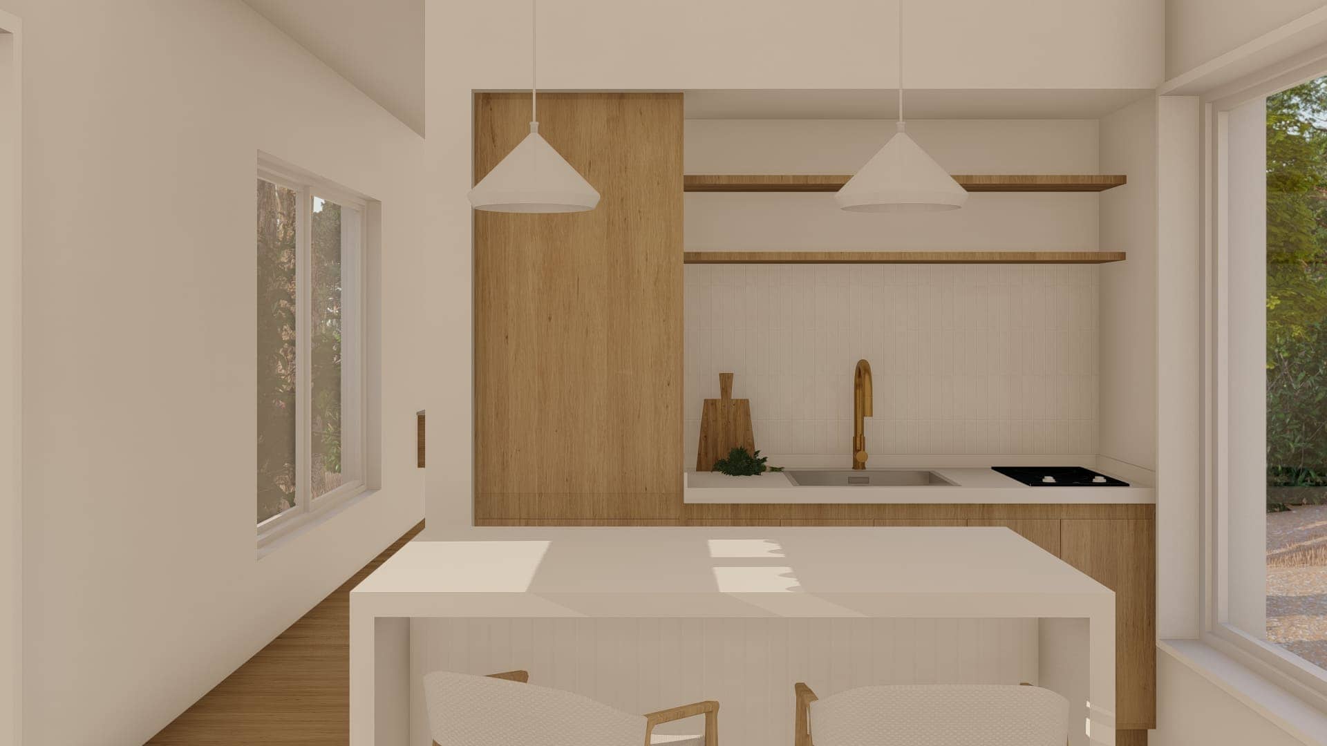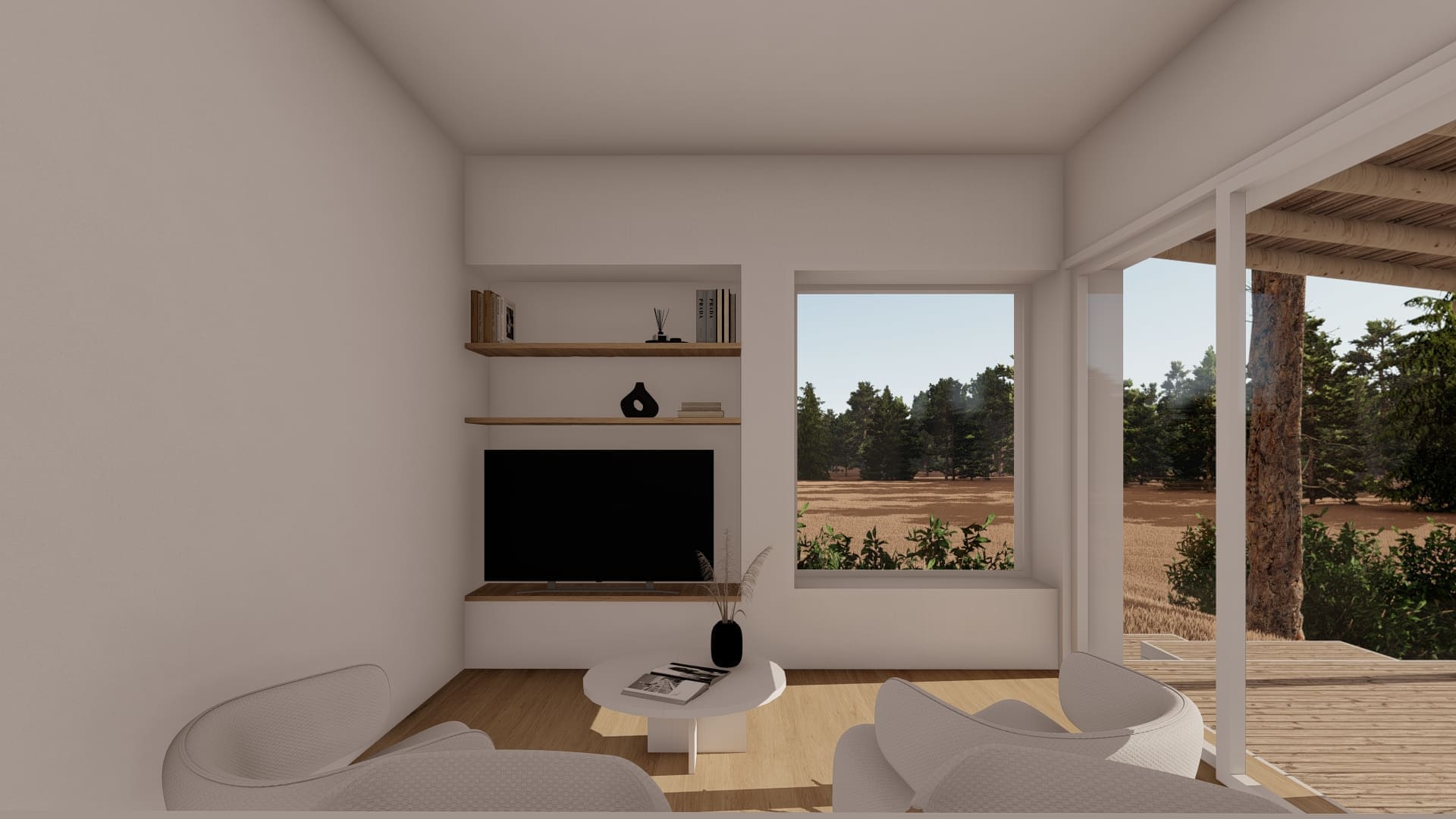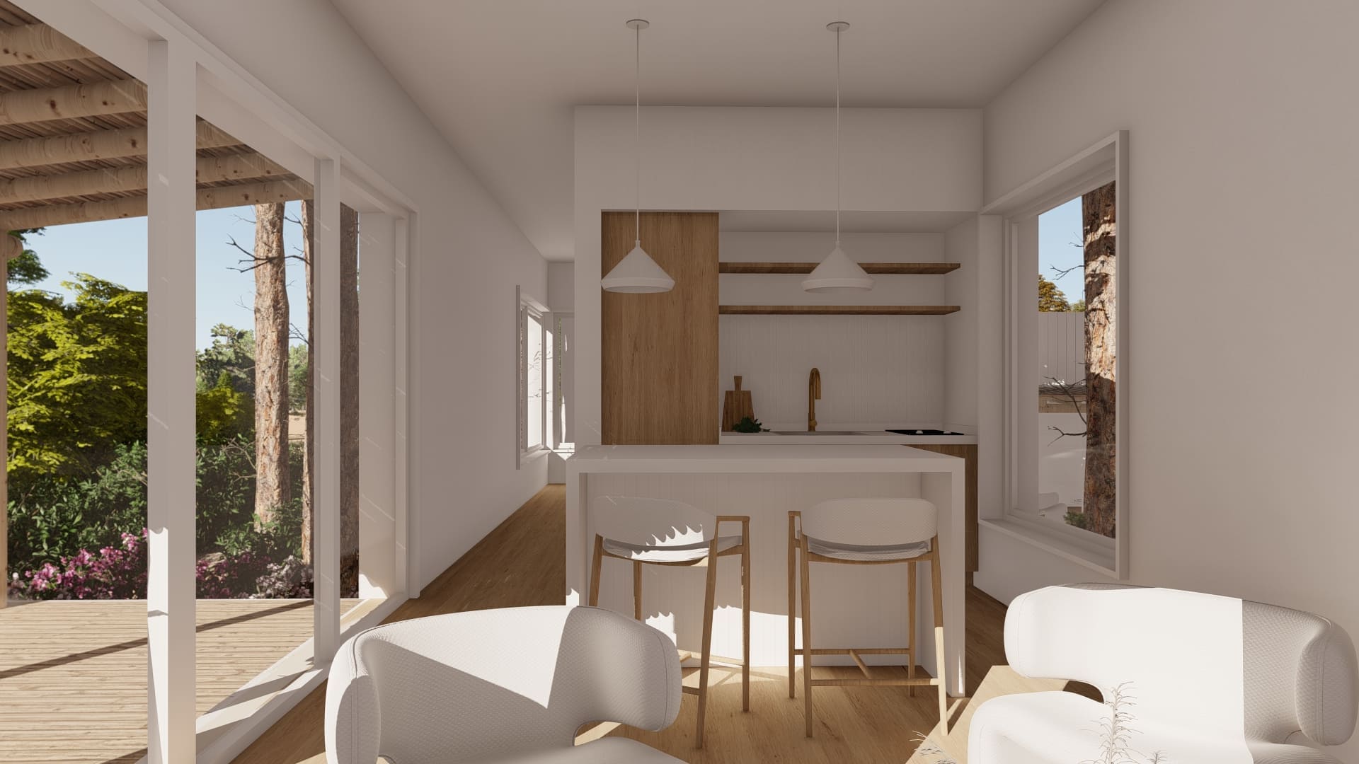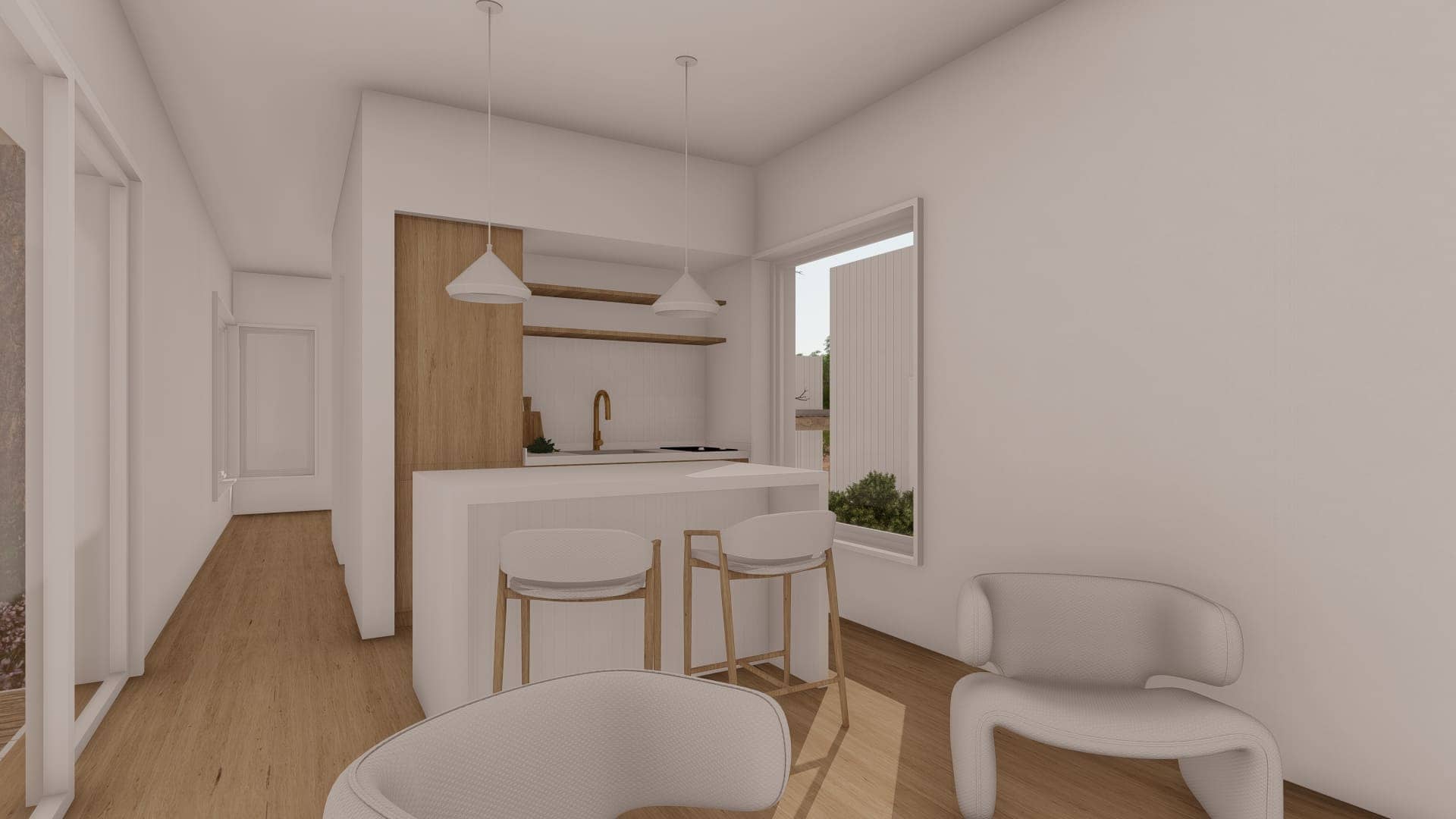 Este proyecto fue diseñado para un terreno irregular en Mar de Las Pampas, provincia de Buenos Aires. Se pensó un complejo multifamiliar de viviendas de entre 40 y 60m2 generando a través del paisaje y los árboles un recorrido y acceso a las mismas.